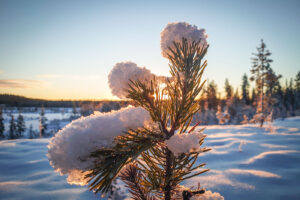 We glide through a varied landscape with snowy forests, frozen lakes and moors and the river Torne – one of Sweden’s four national rivers. Moose, reindeer, ptarmigan and capercaillie are at home here and with a bit of luck we can observe them.