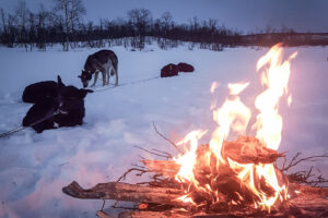 I invite you to lunch around a cozy campfire. Strengthened, we can then continue – if you have booked a ride with a shared sled (one driver, one passenger), you now have the option of swapping.