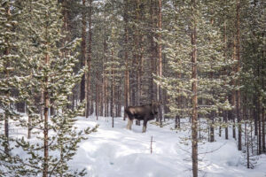 We glide through a varied landscape with snowy forests, frozen lakes and moors and the river Torne – one of Sweden’s four national rivers. Moose, reindeer, ptarmigan and capercaillie are at home here and with a bit of luck we can observe them.